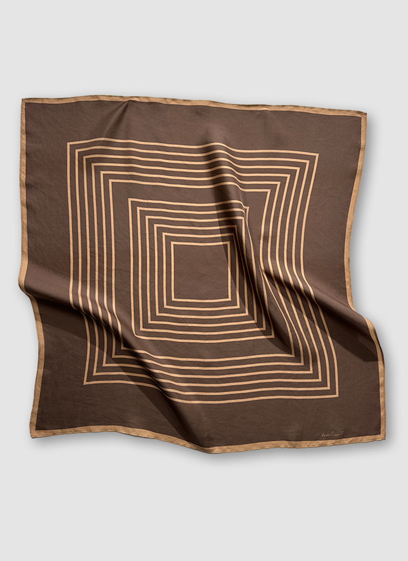 Šilkinė skarelė „Brussels“ – stilius, įkvėptas prabangos ir šokolado magijos. Kaip ir garsusis Briuselio šokoladas, ši skarelė įkūnija ne tik saldžią prabangą, bet ir išskirtinį skonį. Briuselis, žinomas kaip pasaulio šokolado sostinė, kur tobulai dera aukščiausia kokybė ir tradicijos. Ši skarelė, kaip ir rankų darbo belgų šokoladas, suteikia kiekvienam įvaizdžiui išbaigtumo ir gurmaniškos prabangos pojūtį.
